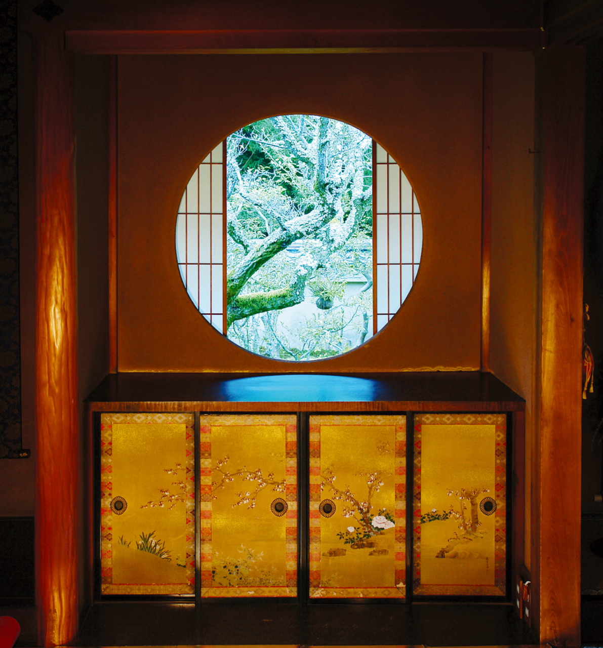 書院の丸い窓(悟りの窓)と四角い窓(迷いの窓)が有名です。